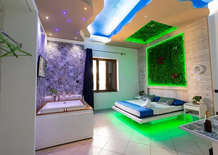 Pompei Luxury Rooms在庞贝提供8间客房.所有的房间均有内庭院,卫星频道平板电视 和气候控制. 此住宿也提供坐浴盆,浴缸 和淋浴. 从这些客房可以尽览城市风光.